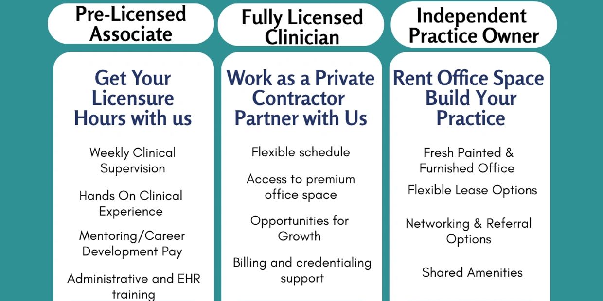 We are glad that you are interested in working with our team. We have several package options available for the growing clinician and the entrepreneurial clinician. We are here to help you expand, as you assist us with providing quality care to NC residents.